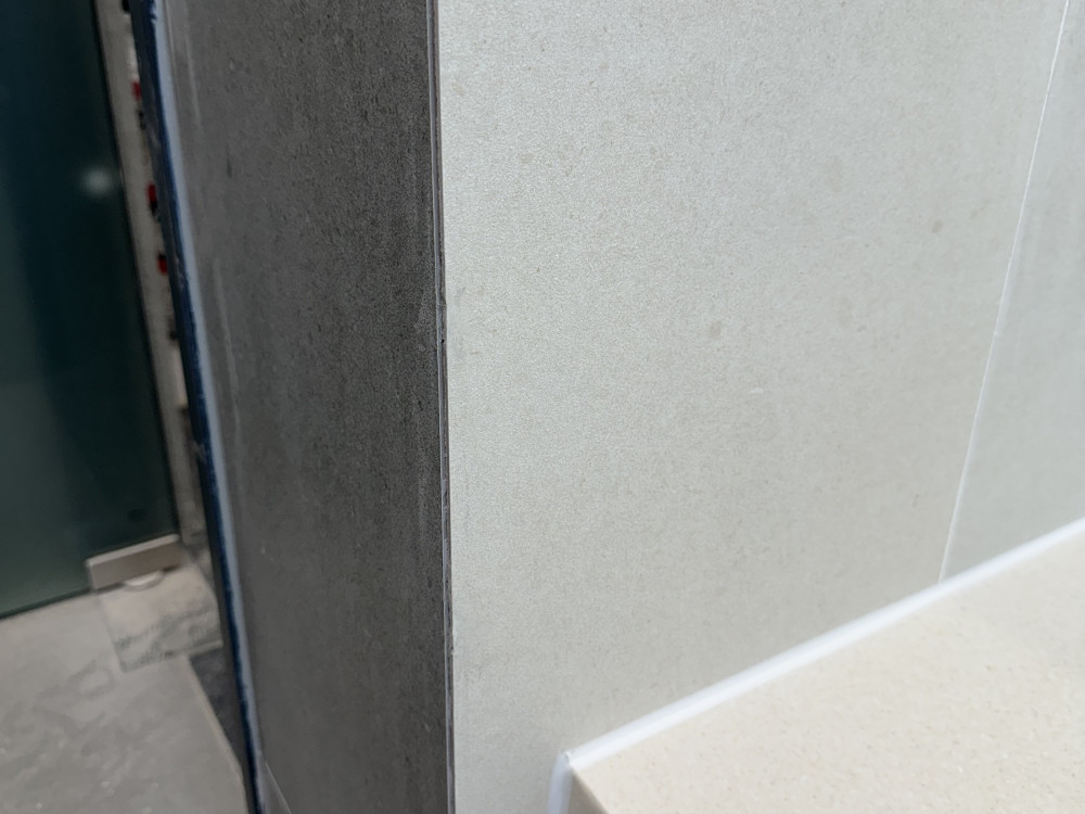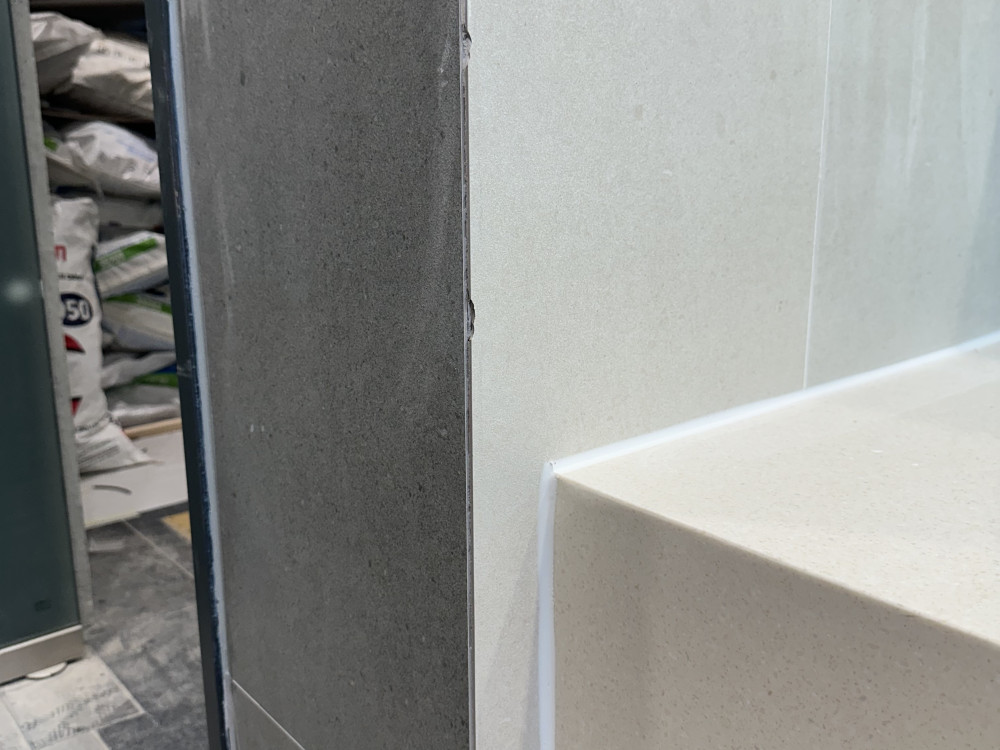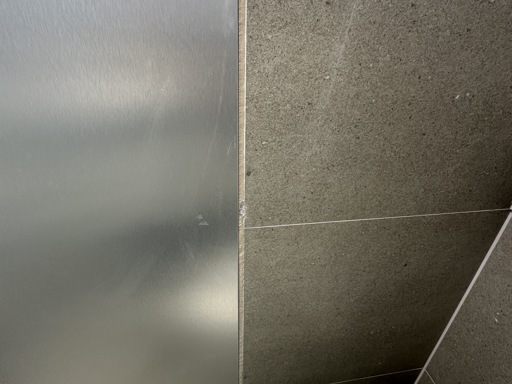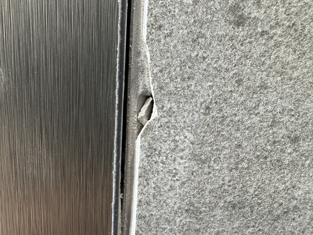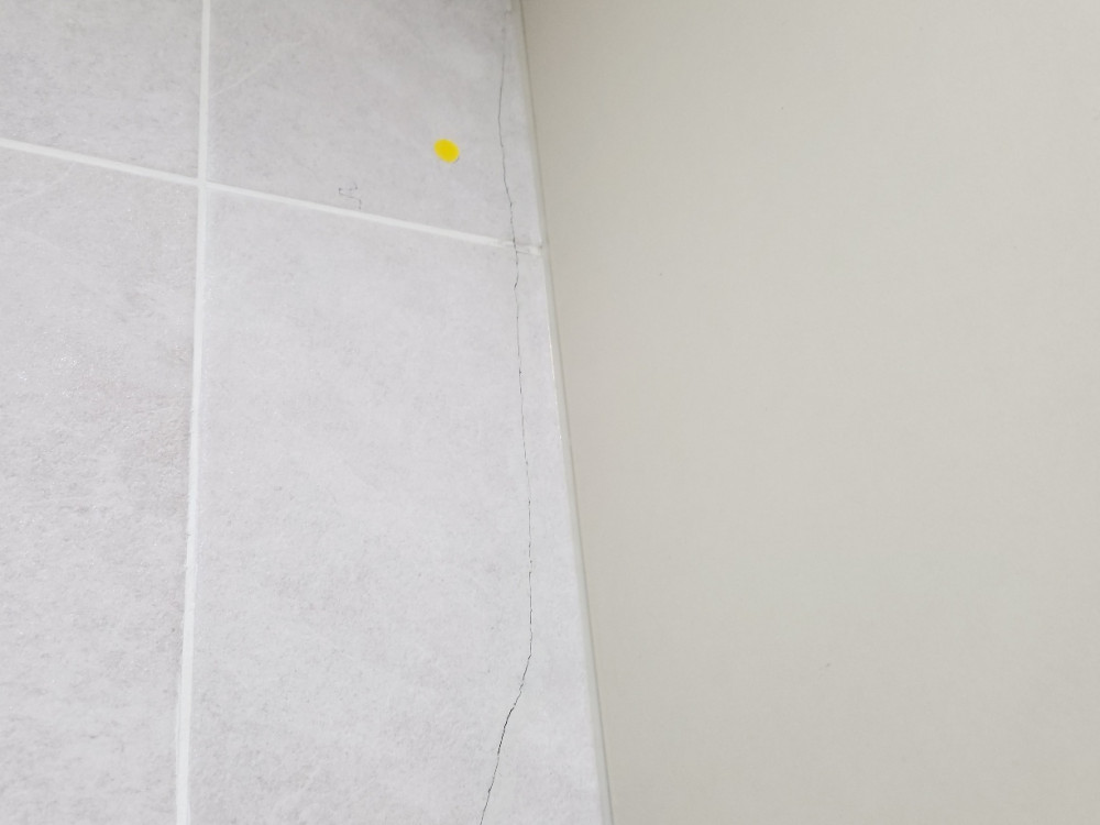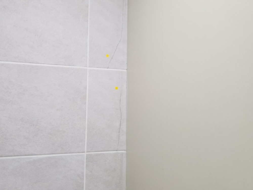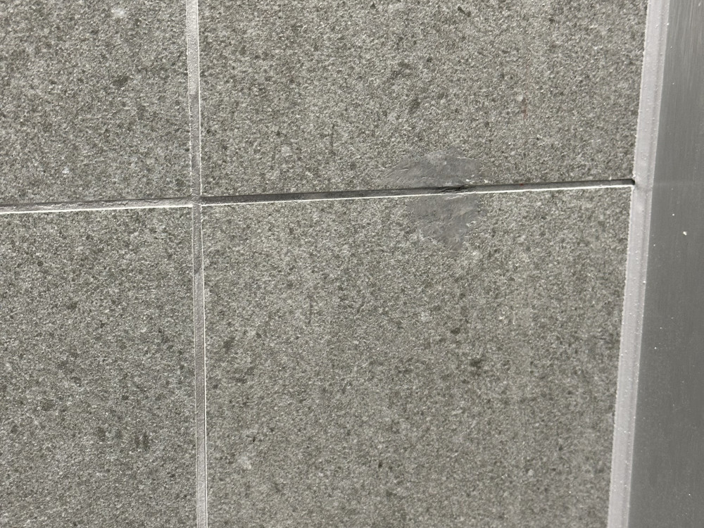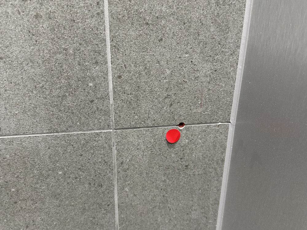 회색 계열 타일에 구멍난 부분 메꾸미 작업전 사진입니다.